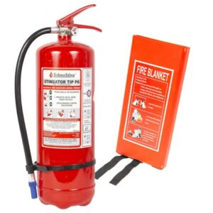 DescrierePachet pentru Siguranta Casei – Stingator P6 si Patura IgnifugaPachetul pentru siguranta casei contine urmatoarele:Stingator P6 TehnoSting Cu Pulbere ABC 40Un Stingator P6 TehnoSting cu pulbere ABC 40 este un extinctor produs in Romania, este incarcat cu pulbere tip ABC si are o greutate a incarcaturii de 6 kg. Jetul unui stingator P6 are o lungime…