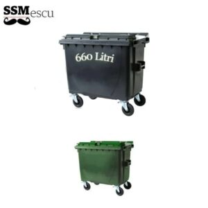 DescrierePubela 660 Litri, Din PlasticContainer gunoi cu capacitatea de 660 litri, realizat din material plastic rezistent la conditii atmosferice si factorii chimici sau biologici.Containerul respecta normele EN 840-2 si EN 840-3.Este dotat cu 4 roti dintre care 2 sunt prevazute cu frana, care se pot roti 360 grade.Manerele laterale asigura o manevrare eficienta si facila…
