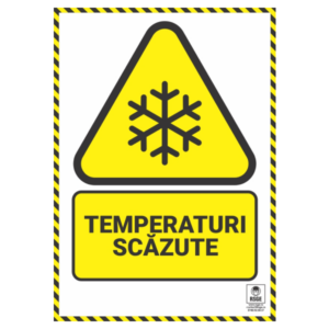 DescriereAutocolant PVC TEMPERATURI SCAZUTEIndicator de semnalizare, cu formă dreptunghiulara, pictogramă neagra pe fundal galben însoțită de text negru pe fond galben, imprimat pe autocolant din PVC format A5, cu utilizare atât în interior cât și în exterior, putând fi aplicat pe diverse suprafețe: sticlă, metal, sau direct pe perete.DescriereProducator – SSMescuDimensiune – 149 x…